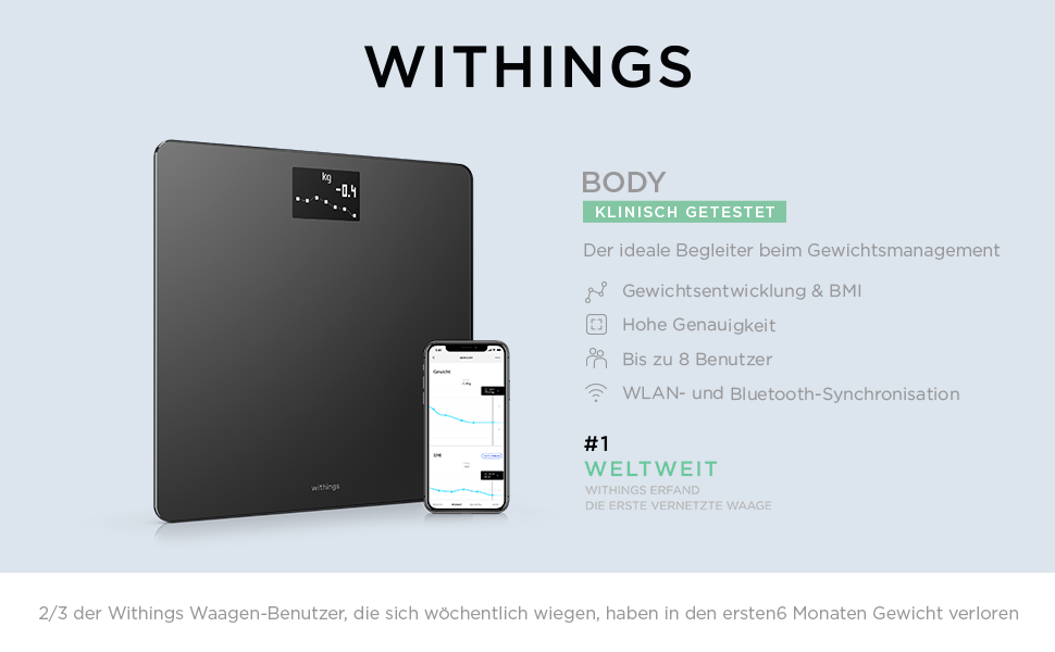 Withings Body Wifi Smart Scales With Bmi Function Digital Bathroom Scale App Sync Via Bluetooth Or Wifi Amazon De Health Personal Care